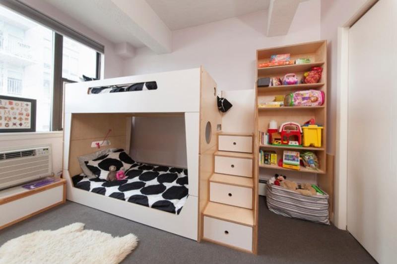 Như vậy một chiếc giường tầng có thể giúp cho 3 bé có không gian ngủ trong chỉ một căn phòng. Đôi khi phần ngăn khéo này có thể là không gian cho bé để quần áo và đồ chơi rất gọn gàng