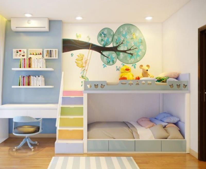 Những chiếc giường tầng đa năng sẽ giúp cho bé nhanh chóng thích nghi với không gian riêng của mình