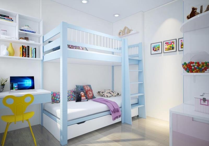 Những chiếc giường tầng đa năng được tích hợp đầy đủ những chức năng cho một căn phòng của bé bao gồm: giường ngủ, giá sách, tủ quần áo, thậm chí là bàn học.